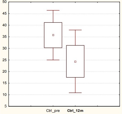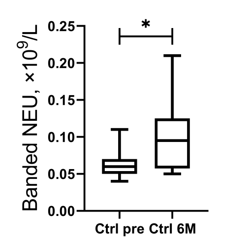 The bNeu count and the level of plasma IL-12 after 6 mo after beginnings of treatment; n(Control)=10, n(MSCs)=15; p≤0.05.
